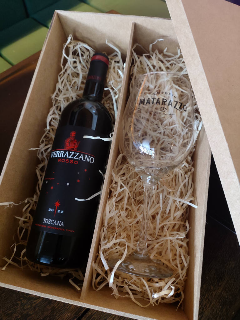 Uvas: Sangiovese, Merlot e trebbiano Toscano “Cor vermelho rubi com reflexos violáceos, sabor harmonioso, equilibrado e estrutura média. No nariz apresenta boa intensidade com notas perfumadas de frutas vermelhas e flores. Vinho atraente, agradável, adequado também para “fusões” gastronómicas contemporâneas”