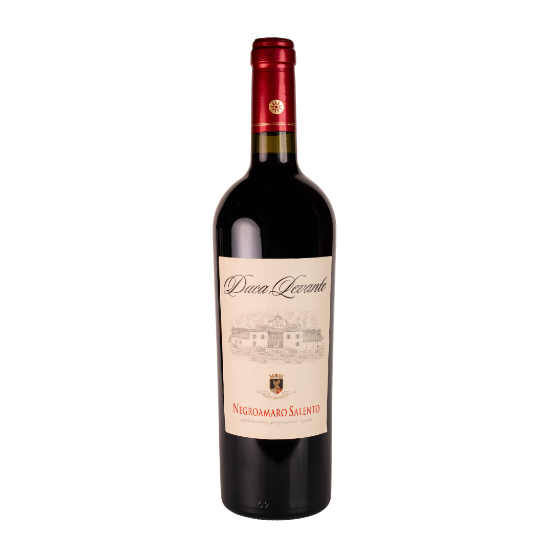 Uva Negroamaro - “Um vinho de cor vermelha com tons de roxo, e uma perfume generoso e persistente, com notas de frutas vermelhas maduras, alcaçuz e especiarias. Um vinho bem orquestrado, fresco e macio com taninos equilibrados”.